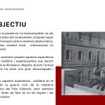 Només puc que donar les gràcies  a l’organització del congrés per haver fet possible que el 30 d’octubre pogués presentar la meua comunicació “Espai i memòria: L’Hospital Militar Internacional d’Ontinyent”. Llegia en el tren mentre arribava a Barcelona, el programa previst. Hi havia ponents de diverses universitats europees, investigadors vinculats a entitats i associacions memorialistes, però també investigadors que anaven sense representar a cap universitat, entitat ni associació. En una de les comunicacions, escoltava la presentació del ponent, prèvia a l’exposició, que es tractava d’un investigador independent. Si us dic la veritat aquest adjectiu en va agradar i crec que a partir d’ara també faré ús d’ell.