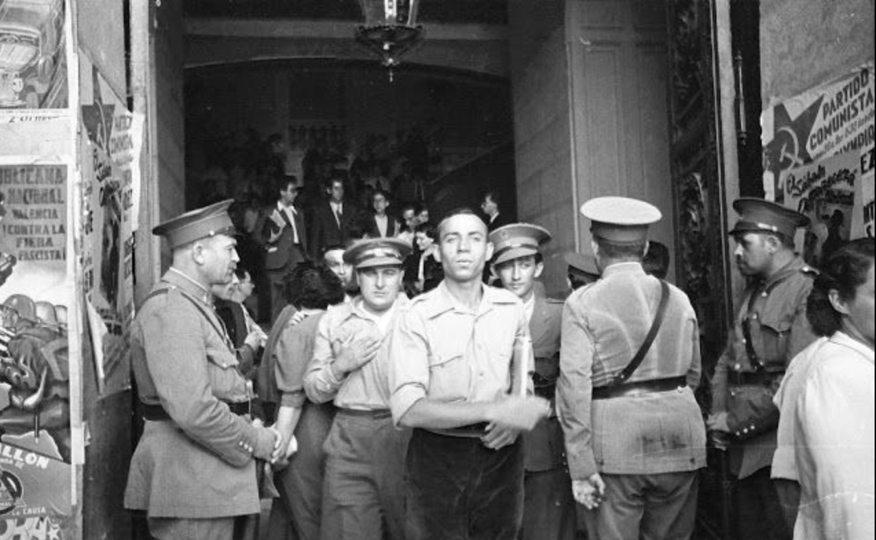 Miguel Hernández en l’Ajuntament de València en 1937 per Walter Reuter. (Fons Guillermo Fernández Zúñiga).