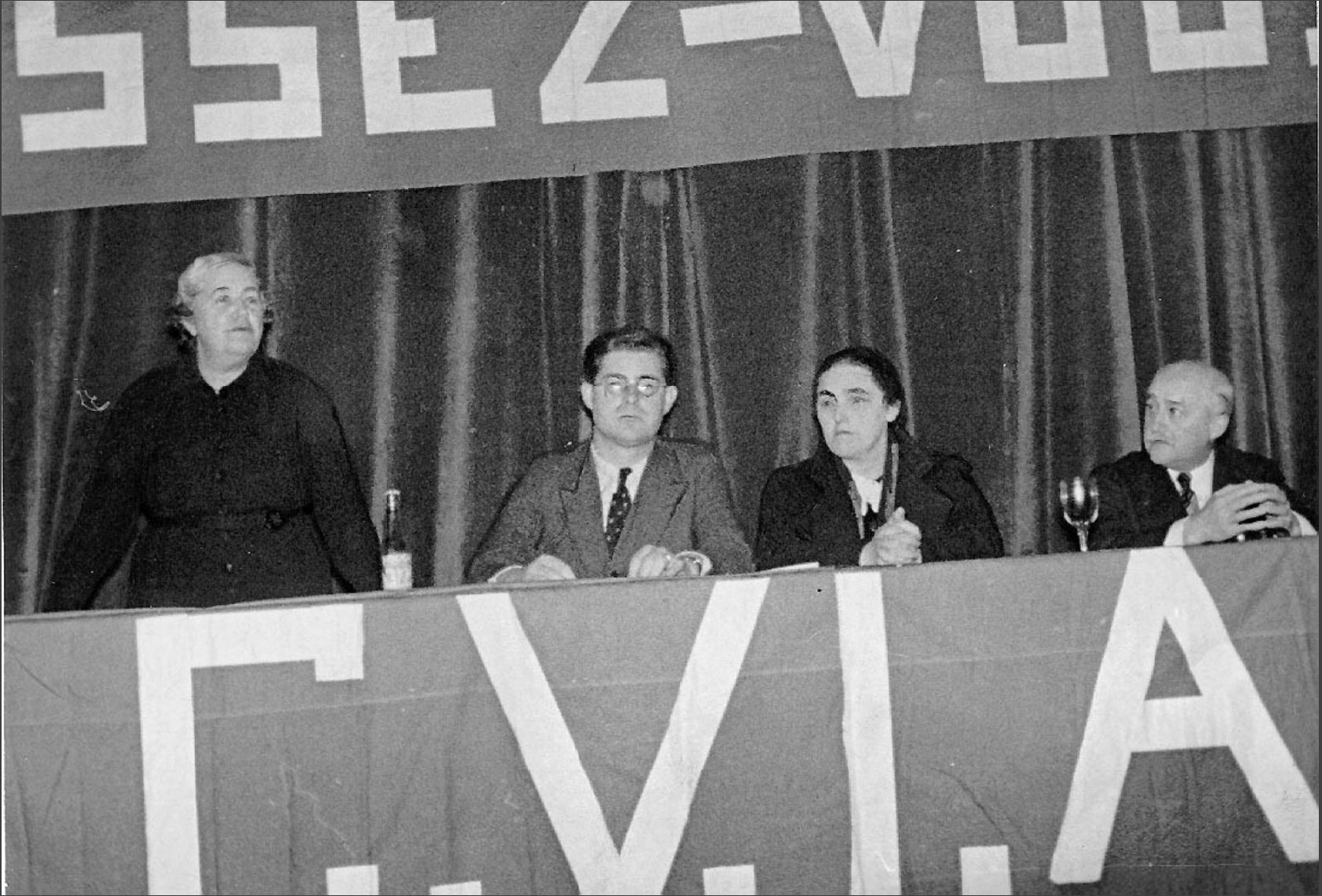 Aquesta foto va estar publicada en la portada de Vooruit i amb el següent peu de foto: “El Comité de Vigilància dels Intel·lectuals Antifeixistes, a Brussel·les, va celebrar dimarts de vesprada una reunió pública, sobre la qual es pot trobar una crònica en la pàgina 2, dins de la nostra Crònica de Brussel·les. En la nostra foto es veu la mesa que presidia esta reunió. D’esquerra a dreta: Martínez Sierra, antic membre de les Corts; el senyor Jean Fontaine; Isabelle Blume; el doctor Neumann de l’hospital d’Ontinyent.” (FotoAmsab-ISH)